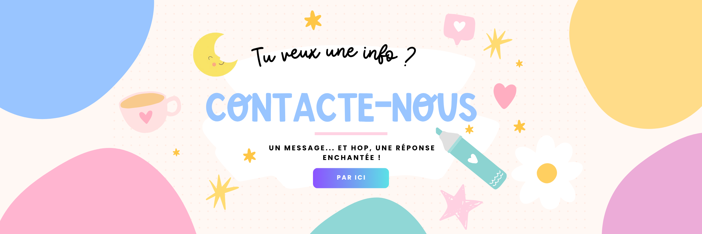 Une interrogation ? Consulte notre FAQ magique🪄. Et si le mystère persiste... Envoie-nous un message, on adore les mots doux !✨
